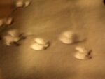 Avtrykkene av fjellbekker er synlige i snøen. De afdrukken van de bergbeken zijn zichtbaar in de sneeuw