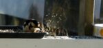 Nå banker han på tredobbel glass. Han skal inn! Nu pikt hij op het driedubbele glas. Hij wil naar binnen!