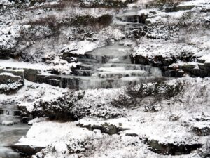 Txt 1: Vi seiler gjennom dype fjorder, omgitt av bratte, høye klipper med brusende fosser som vi kan komme helt innpå. Her – en foss i Lysefjorden. Txt 2: En delfin rett ved siden av båten vår. Skader på hodet tyder på at den har blitt truffet av en propell. Txt 3: : ’t Spant for anker ved Hüglo. Et ideelt sted for en grillfest om bord. Klik op de foto = leesbare txt!