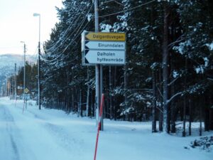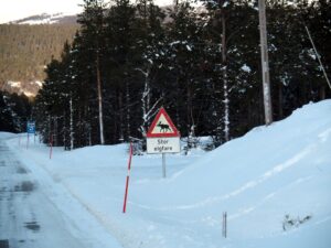 Langs hele veien mellom Hjerkinn og Folldal er det stor elgfare. Spor etter spor, men vi er for tidlig å møte dem! De hele weg tussen Hjerkinn en Folldal is het groot elandengevaar. Het wemelt van de sporen! Maar wij zijn te vroeg, het is nog niet donker