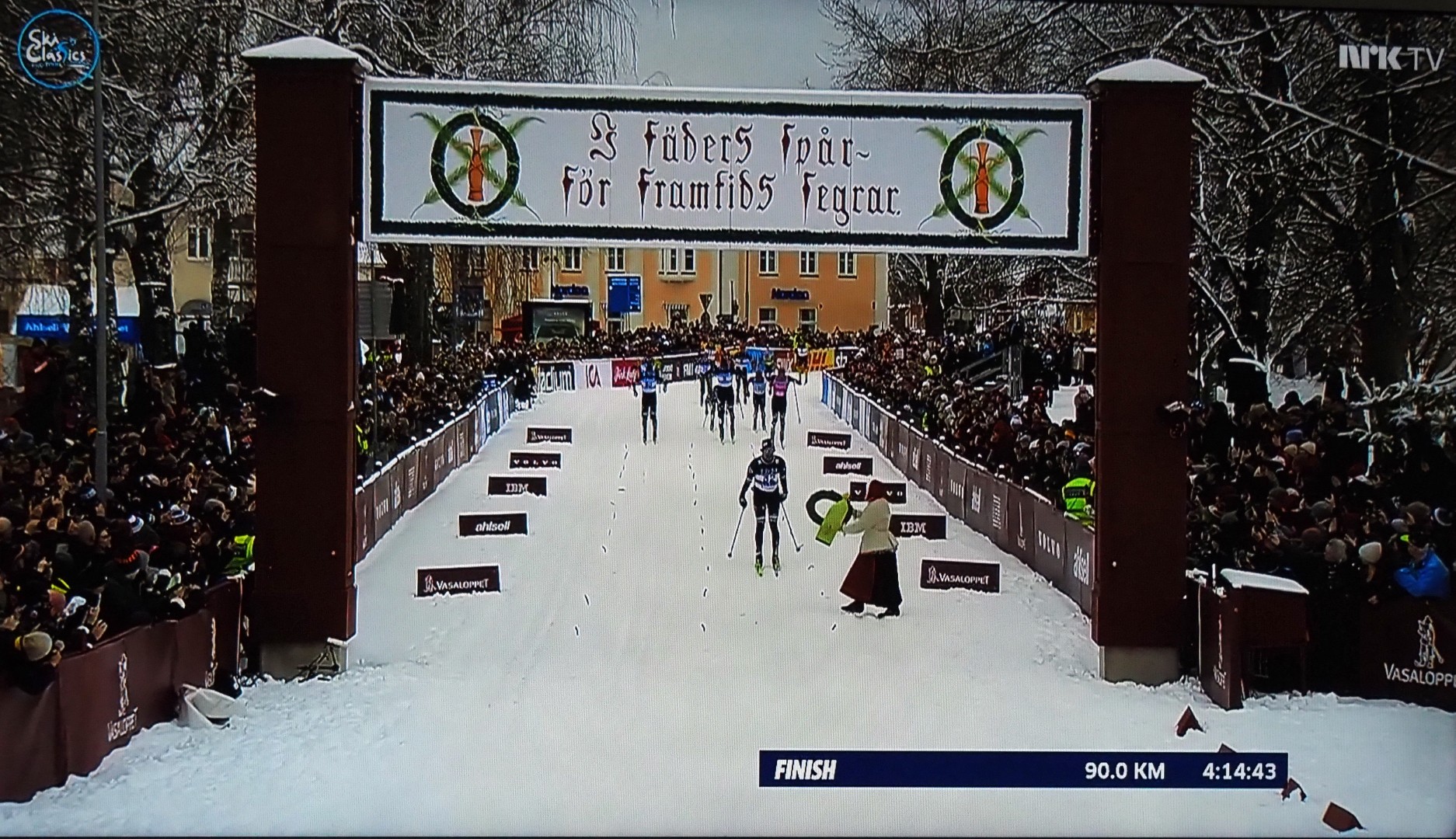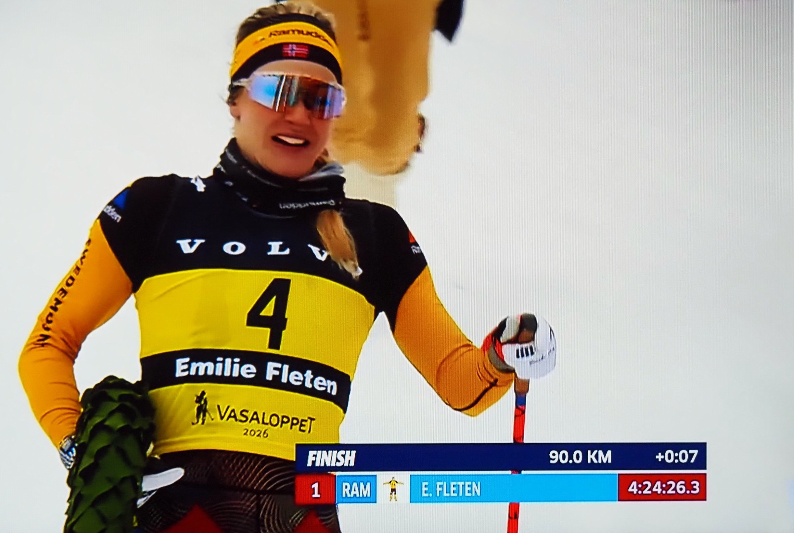 Den første kvinnen kommer inn: norske Emilie Fleten. De 1e vrouw komt binnen: de Noorse Emilie Fleten. Voor de 3e keer winnaar van de Vassaloppet!