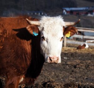 Sauebonden langs Lyngstadveien. Schapenboer langs Lyngstadveien