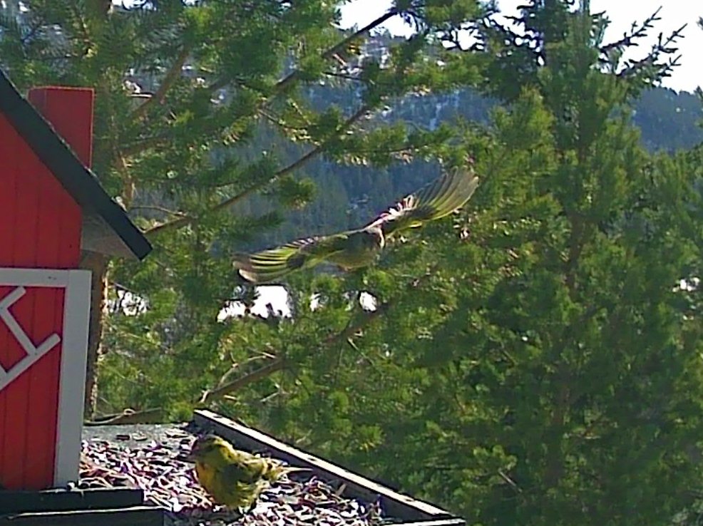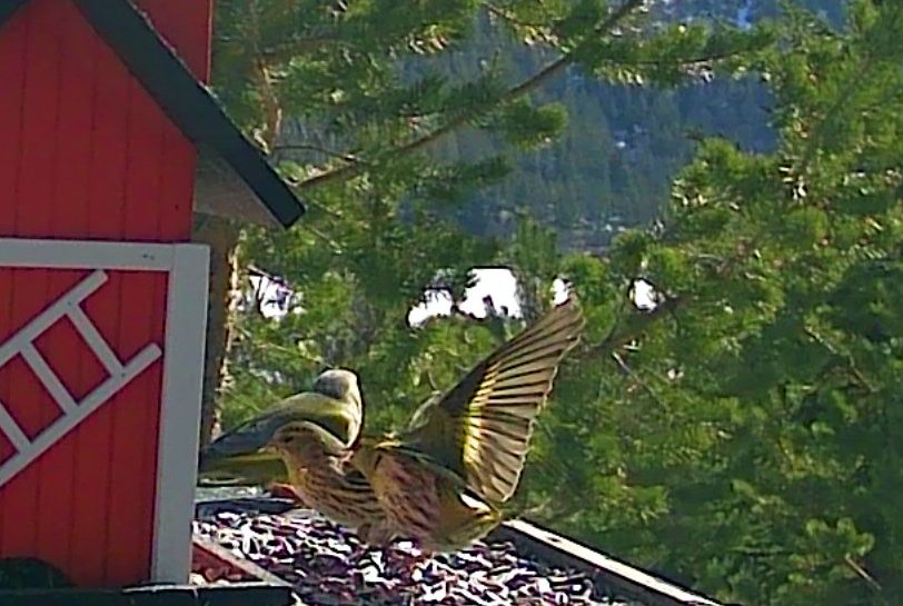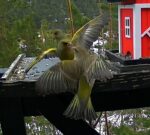 Til høyre: grønnfink og grønnsisik. Rechts: groenling en twee sijsjes