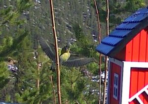 Flaggspetten banker på huset vårt. Heldigvis av og til! Deze grote bonte specht hamert los op ons huis. Gelukkig niet zo vaak…