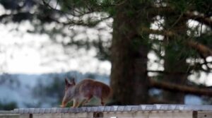 Han hopper i skogen, men… kommer flere ganger tilbake i buret. Hij springt het bos in, maar… hij komt steeds terug de kooi in!