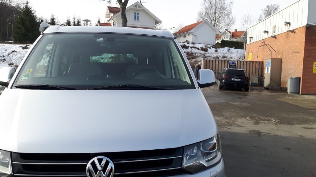1. Eindelijk! Dinsdag: VW-wasdag! Door de wasstraat kost meer dan 30 euro, omgerekend. Te zot! Ik houd van mijn koekblik, maar 30 euro voor een warm bad? Ik heb de oplossing gevonden. Zie je die auto achter de VW? die wordt nu afgespoten met water en met zeep en weer met water. Kostte 8 euro. Leuk werk en schoon dat ie is!!!