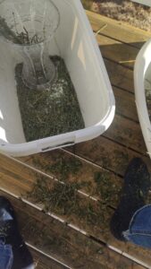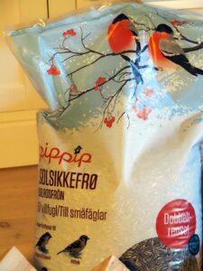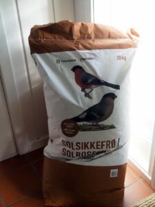 I mellomtiden kjører jeg til Feleskjøpet. 20 kg solsikkefrø! In die tijd rijd ik naar de Coöperatie en koop 20 kg zonnebloempitten voor ons ”vee”!