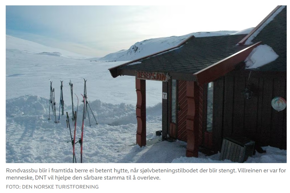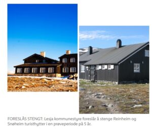 FORESLÅS STENGT: Lesja kommunestyre foreslår å stenge Reinheim og Snøheim turisthytter i en prøveperiode på 5 år. Gaan DNT-hutten Snøheim en Reinheim voor 5 jaar dicht? LINK = https://www.nrk.no/innlandet/lesja-kommune-vil-stenge-dnt-hytter-pa-dovrefjell-av-hensyn-til-villrein