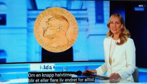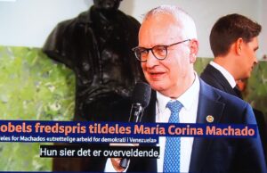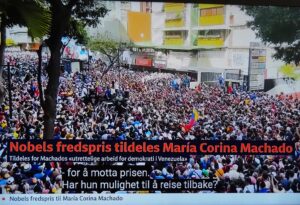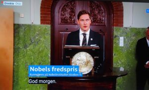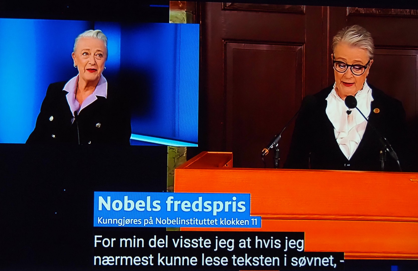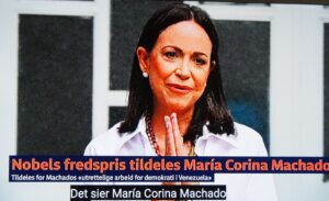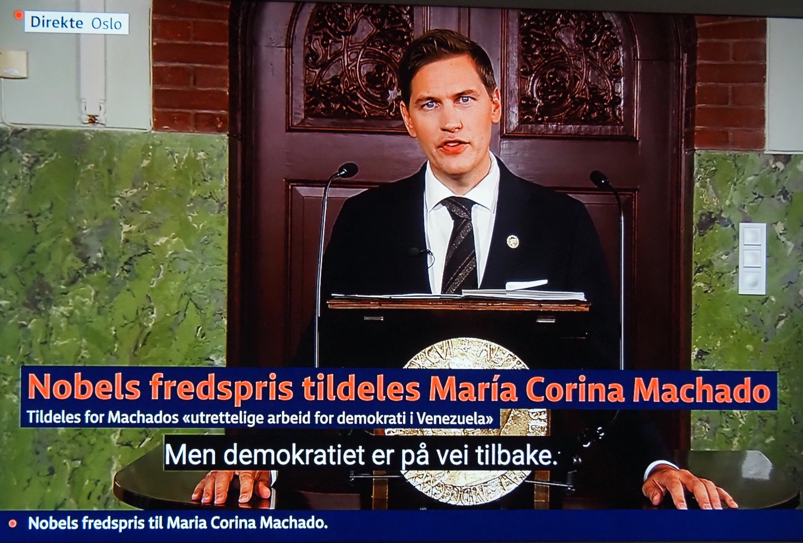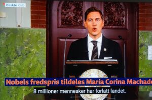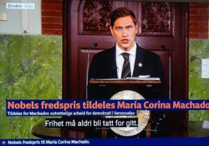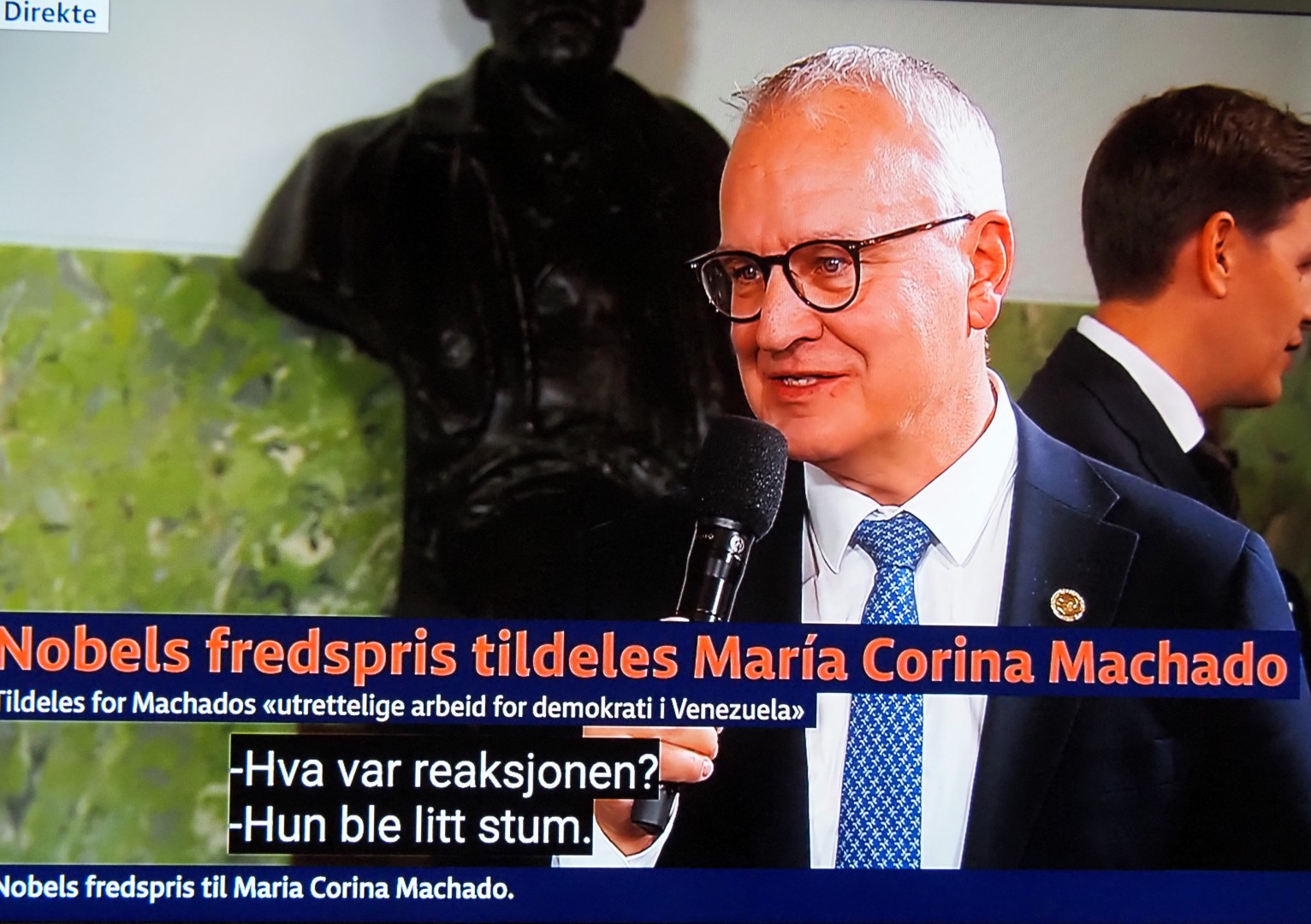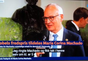I studio snakker de om Maria Corina Machado. In de studio praten ze over de winnaar van de Nobels vredesprijs