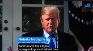 NRK end-redaktør utenlandske saker: ”Men samtidig har vi Trumps presidentskap som kaster en lang skygge over prisen.” De eind-redacteur van NRK-buitenlandse zaken vindt dat Trumps presidentschap een lange schaduw over de prijs werpt