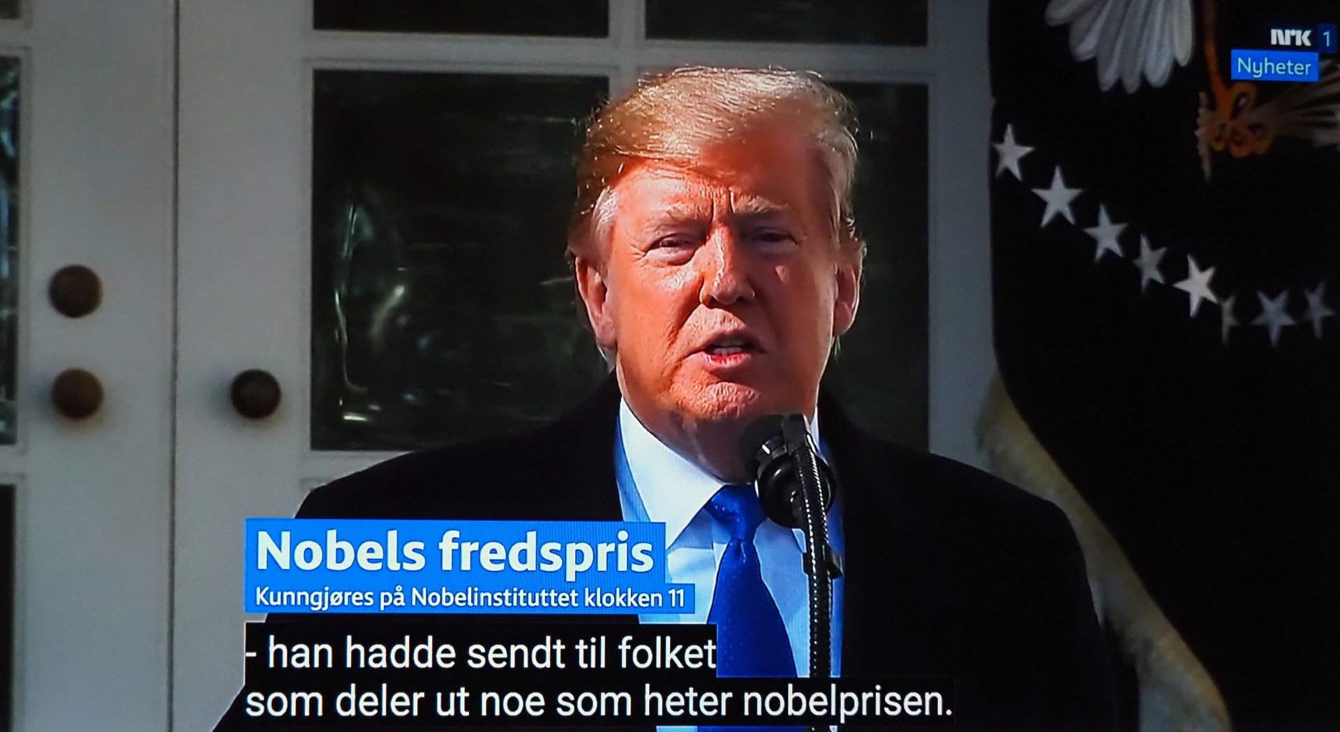 Trump: ”Men jeg ble nominert til Nobels fredspris”. Trump: ”Maar ik ben genomineerd door de Nobelprijs voor de Vrede”