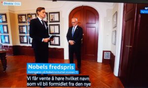 Komitéleiar Jørgen Wathne Frydnes: Nobelkomiteen: – Me baserer oss berre på Alfred Nobels testamentet. Prisen er basert på et fri og rettferdig valg og er ikke bestemt av norske politikere! De leider van het Nobelcommittee vertelt dat zij zich strikt aan Alfred Nobels testament houden. De prijs os gebaseerd op een vrije en rechtvaardige keus zonder invloed van Noorse politici.