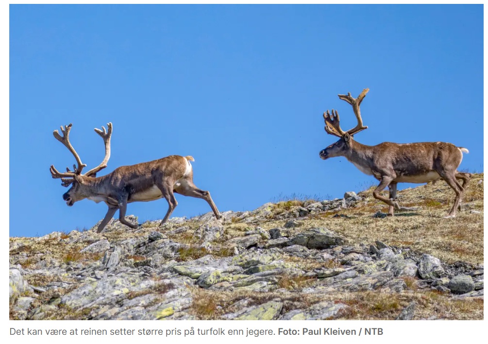Det kan være at reinen setter større pris på turfolk enn jegere. Foto: Paul Kleiven / NTB. Het is mogelijk dat Wilde Rendieren liever wandelaars om zich heen hebben dan jagers