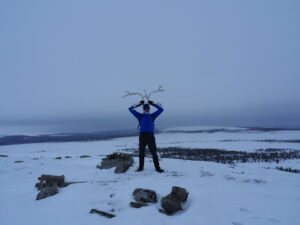 På tur den 17. februar 2019 med Marco rundt Trolløypa, da vi funnet geviret til en villrein. Te ski met Marco rondom Trolløypa toen we op 17 februari dit gewei van een Wilde Rendier vonden