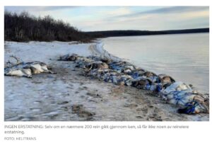 I fjor mistet flere reineiere 259 dyr i en drukningsulykke i Kautokeino. Kun deler av dette blir erstattet. Vorig jaar verdronken 259 Tamrendieren in Kautokeine. Naast de dierentragedie een grote financiële strop voor tamrendieren-eigenaren. LINK = https://www.nrk.no/sapmi/flere-reineiere-star-uten-erstatning-etter-dyretragedie-i-kautokeino