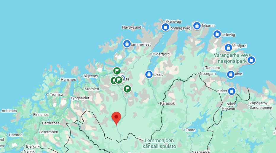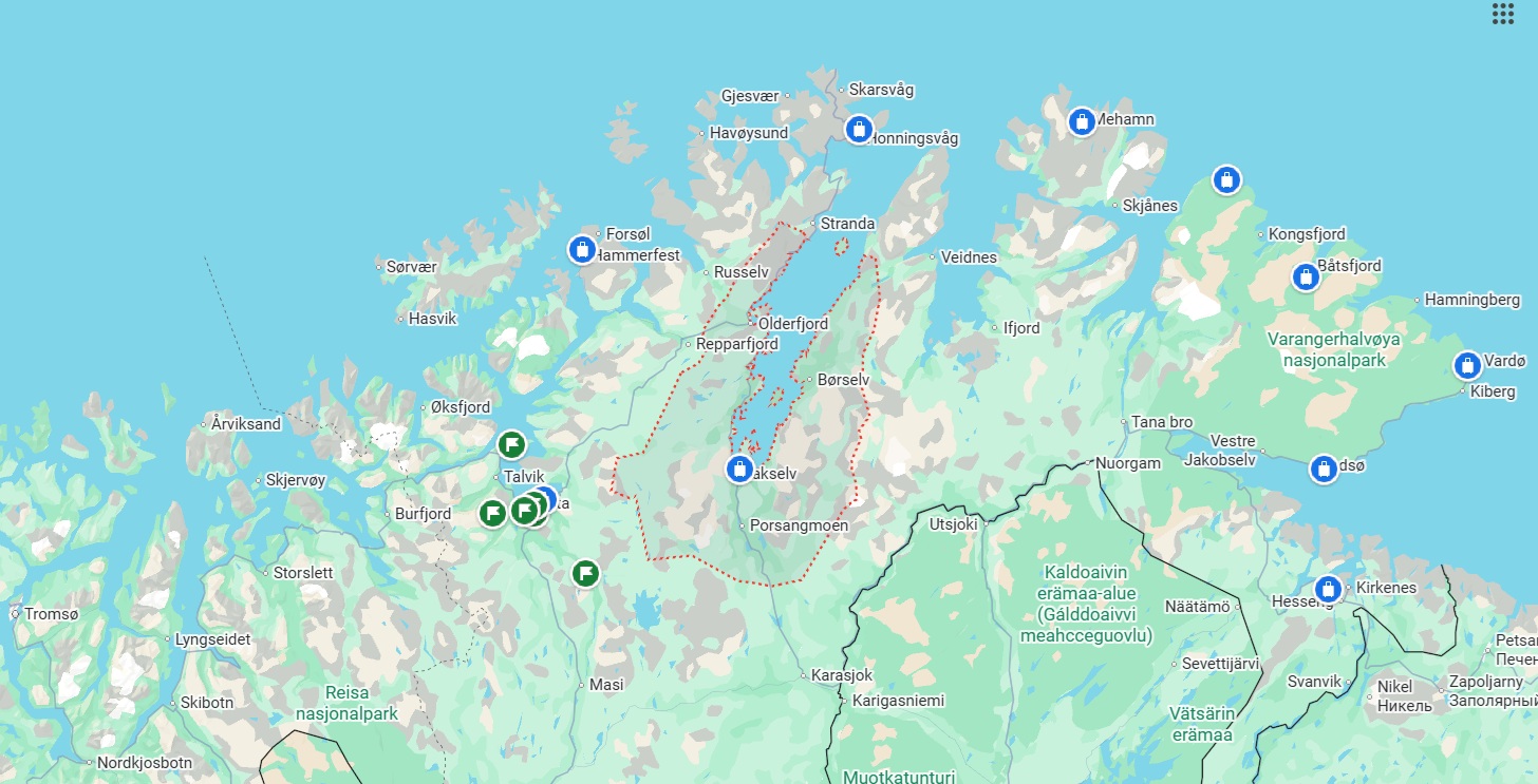 Kart Porsanger kommune, hvor tragedien funnet plass. Vi har vært der i juli 2025. Dit is de kaart van Porsanger gemeente, waar de tragedie plaatsvond. Wij waren daar juli 2025!