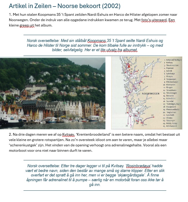 Seilminner 3 ”Norge sjarmerer oss”. Zeilherinneringen 3 ”Het Noorse blijft bekoren”
