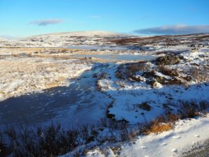 Vann til venstre av fjellveien til Ramshytta. Water links van de zandweg naar Ramshytta