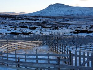 Ramshytta hvor de samler sau om høsten. Ramshytta waar de schapen in het najaar worden verzameld om in een vrachtwagen naar een warme en laag-gelegen boerderij te verhuizen
