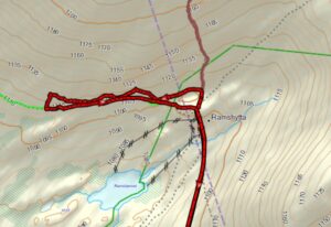 Tur til venstre av Ramshytta. Wandeling links van Ramshytta