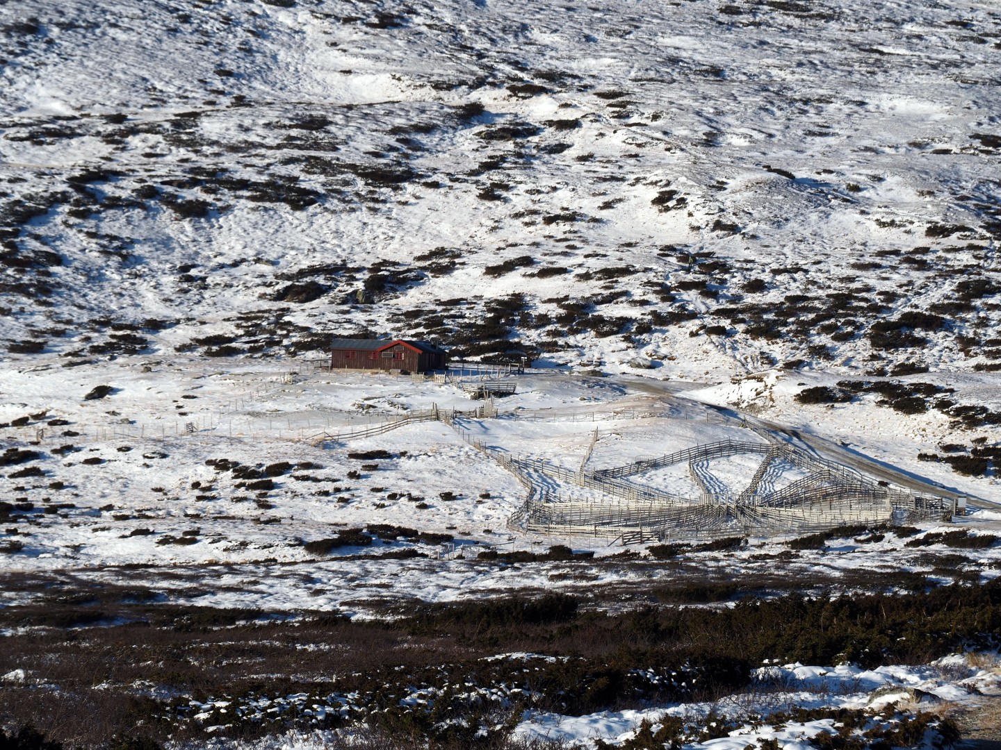 Ramshytta hvor de samler sau om høsten. Ramshytta waar de schapen in het najaar worden verzameld om in een vrachtwagen naar een warme en laag-gelegen boerderij te verhuizen