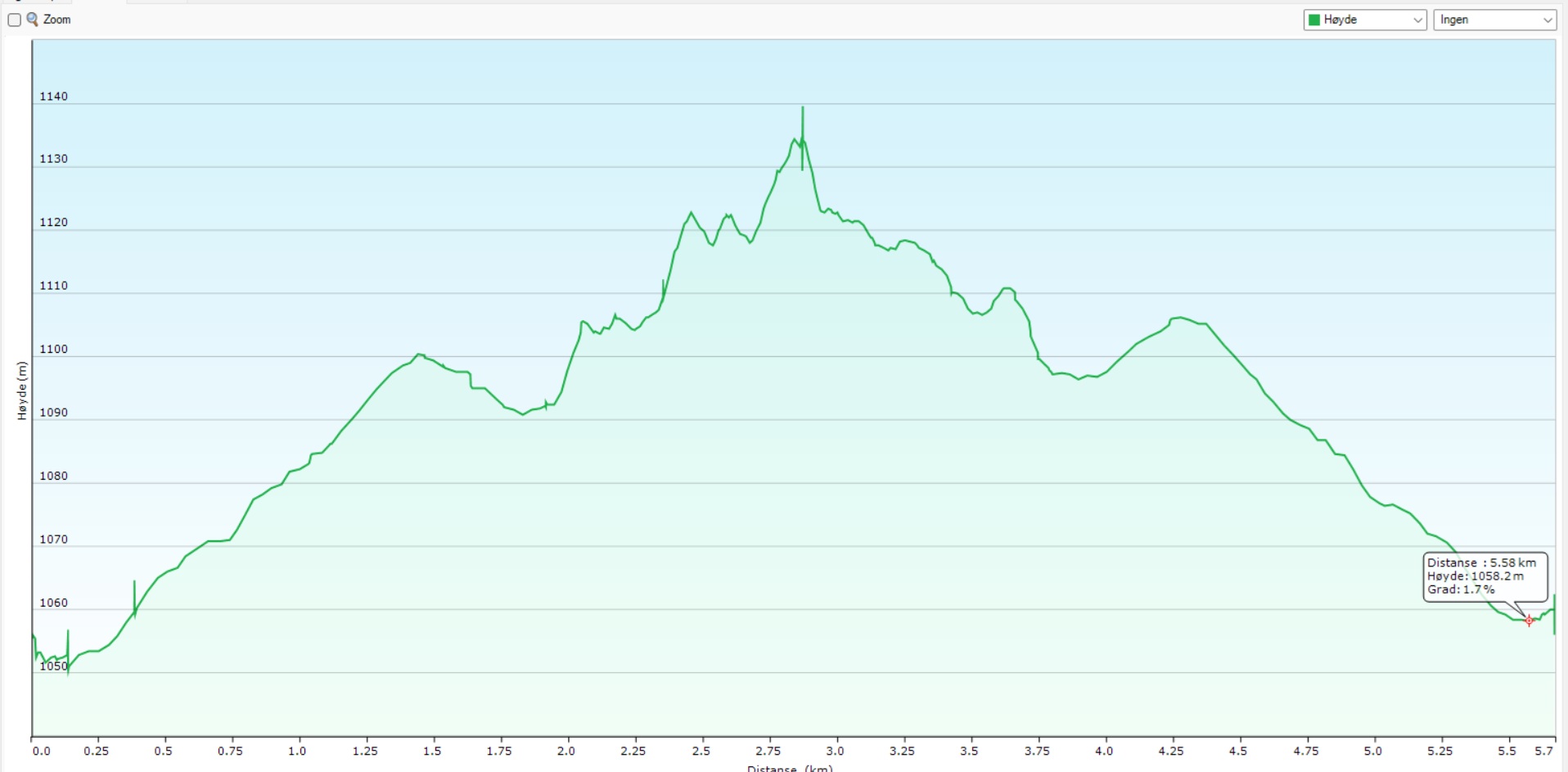 Tur diagram: 5,8 km, stigning 135 m. Diagram: 5,8 km, stijging 135 m.