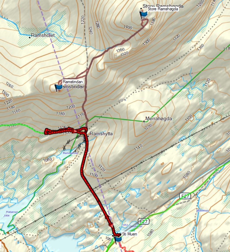 Sør for Ramstinden. Zuidelijk van de Ramstinden