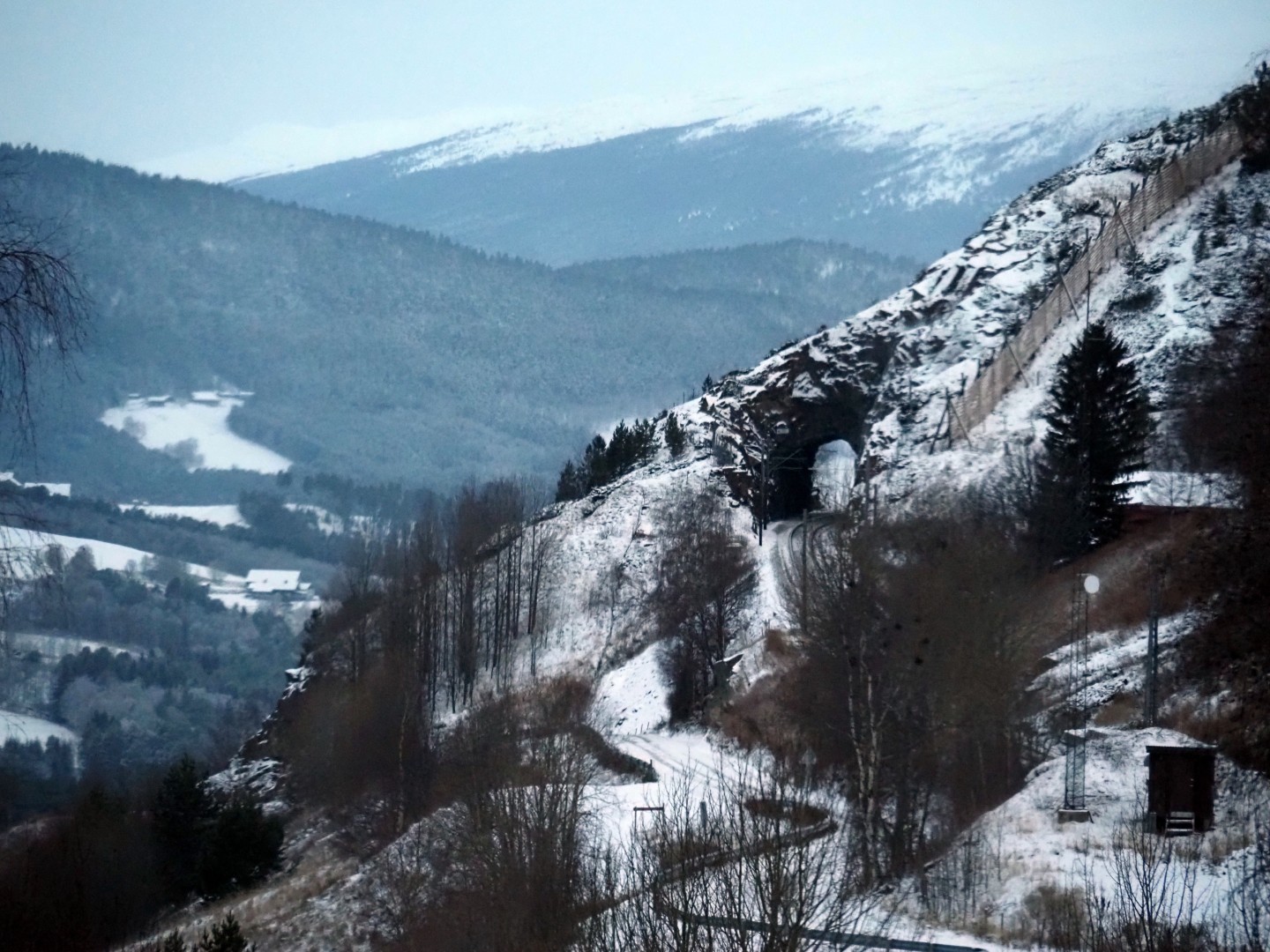 En kronglete vei ned til E6 med en tunnel for togen! Een kronkelige weg naar de E6 met een tunneltje voor de trein!