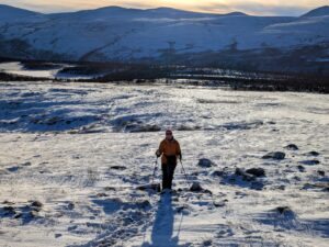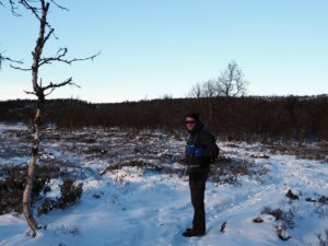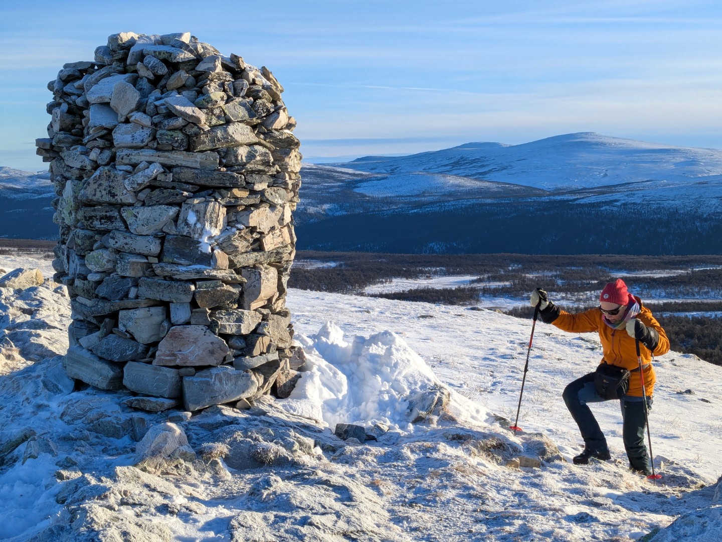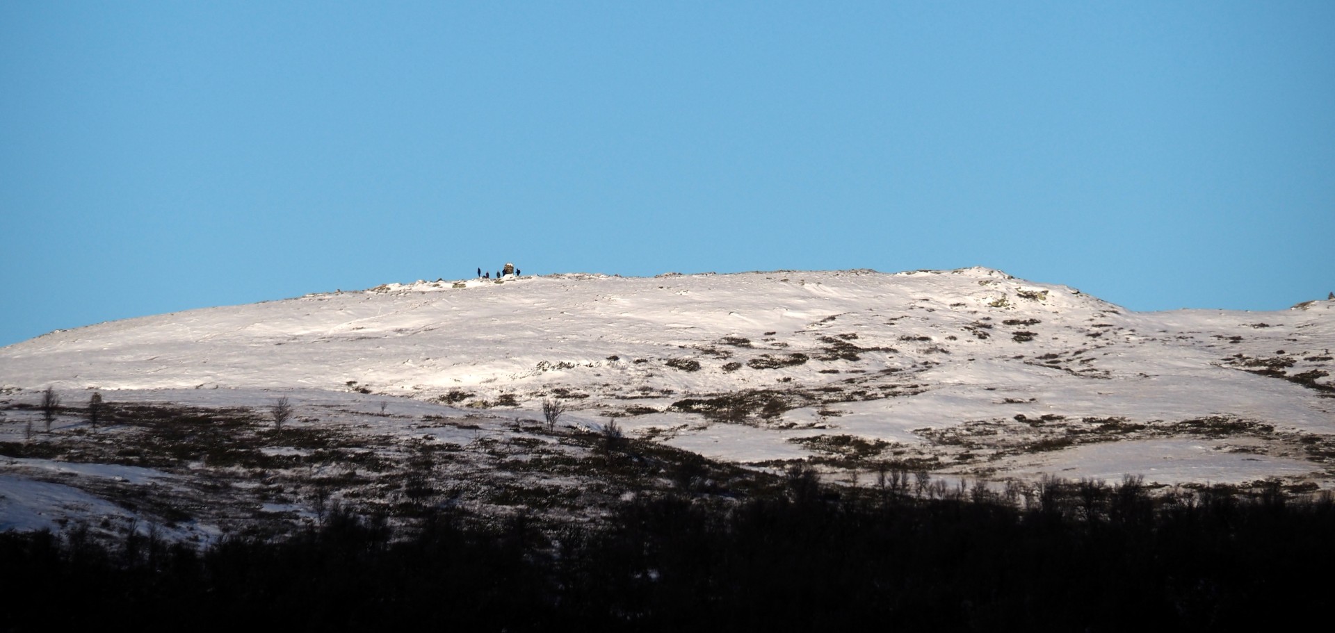 Thomas ringer. Jeg går tilbake for å vise ham Rondane. Thomas belt. Ik loop iets terug naar boven, om hem de Rondane te laten zien
