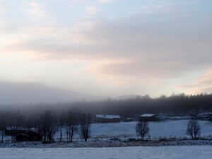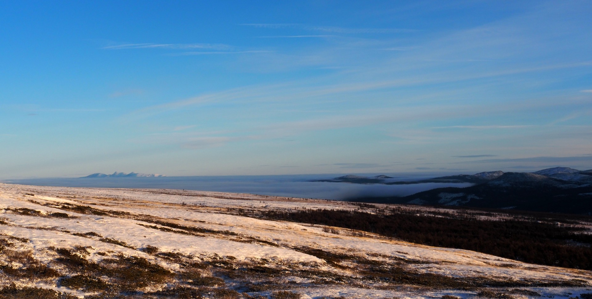 Tåken ligger i Sollia-dalen. De mist ligt over Sollia-dal
