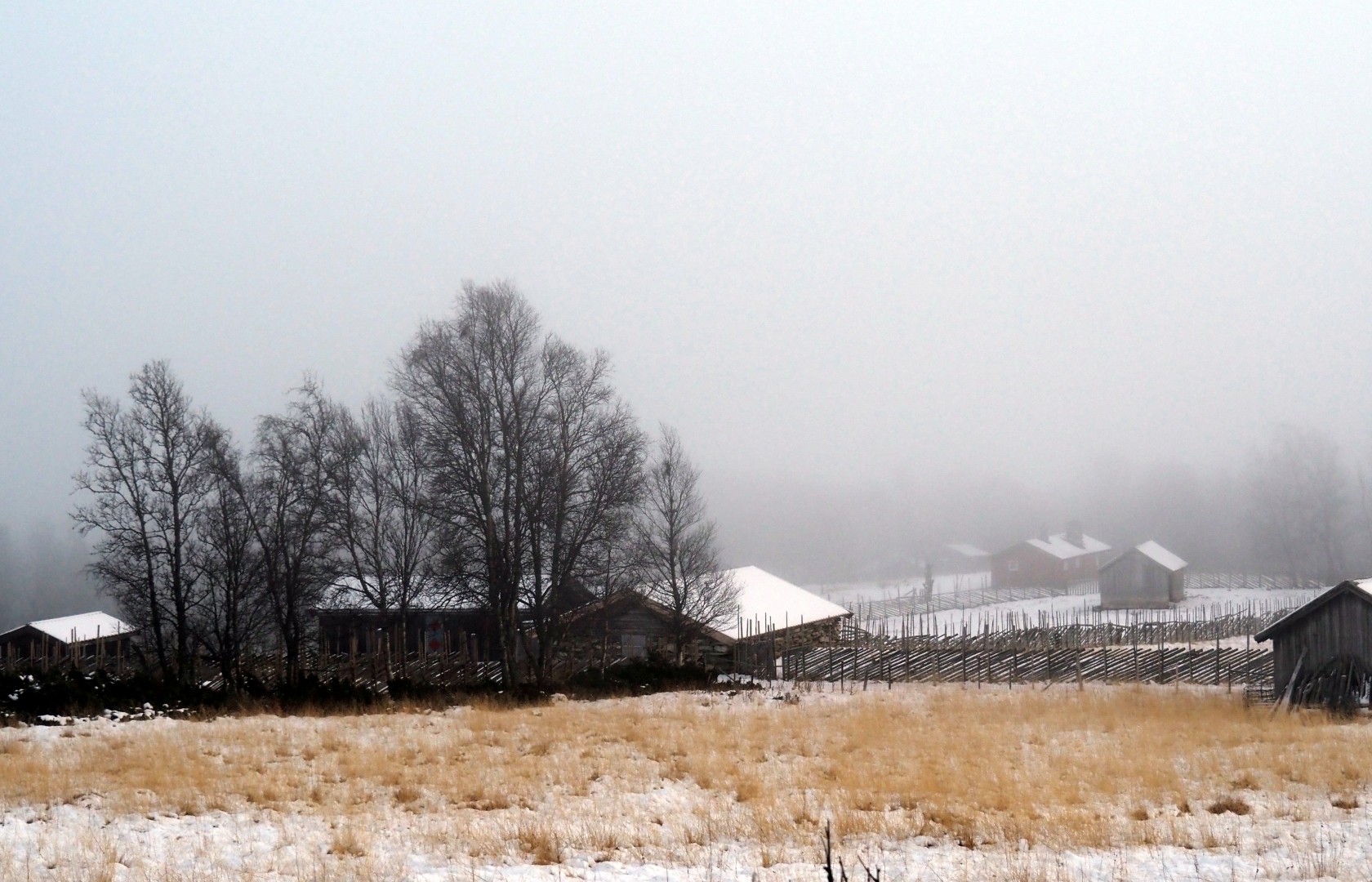 Tåken faller over Øverdalssætra område. De mist daalt neer over de omgeving van Øverdalssætra