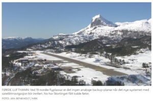 NEDERLANDS: De Noorse Overheid ontdekte dat er op 19 Noorse luchthavens geen back-up oplossing is. De traditionele navigatiesystemen zullen de komende jaren volledig worden uitgeschakeld. LINK = https://www.nrk.no/vestland/stortinget-har-fatt-kalde-foter_-inga-reserveloysing-ved-19-norske-flyplassar