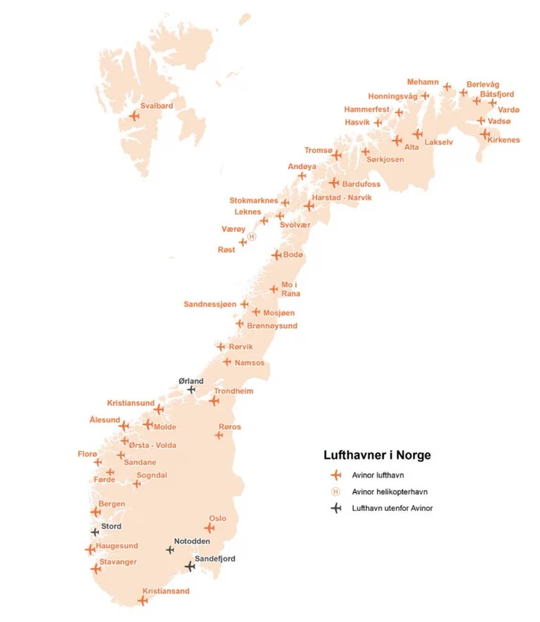 Luchthavens maken deel uit van de Noorse infrastructuur en zijn belangrijk voor de paraatheid van de samenleving. Veiligheid en paraatheid moeten prioriteit krijgen. Noorwegen is volledig afhankelijk van een functionerend luchtvaartsysteem. Er zijn een of twee back-up systemen nodig.