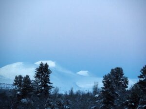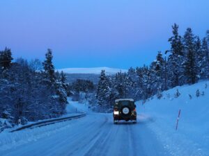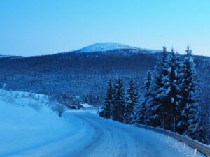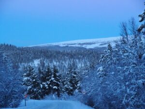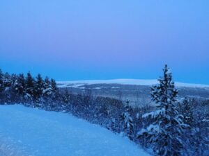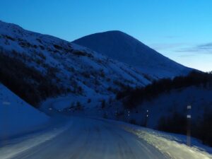 In het blauwe uurtje rijden we eerst naar JOKER in At5nbrua en via Enden naar Ringebu, want het kerstlicht in de boom buiten heeft de geest gegeven!