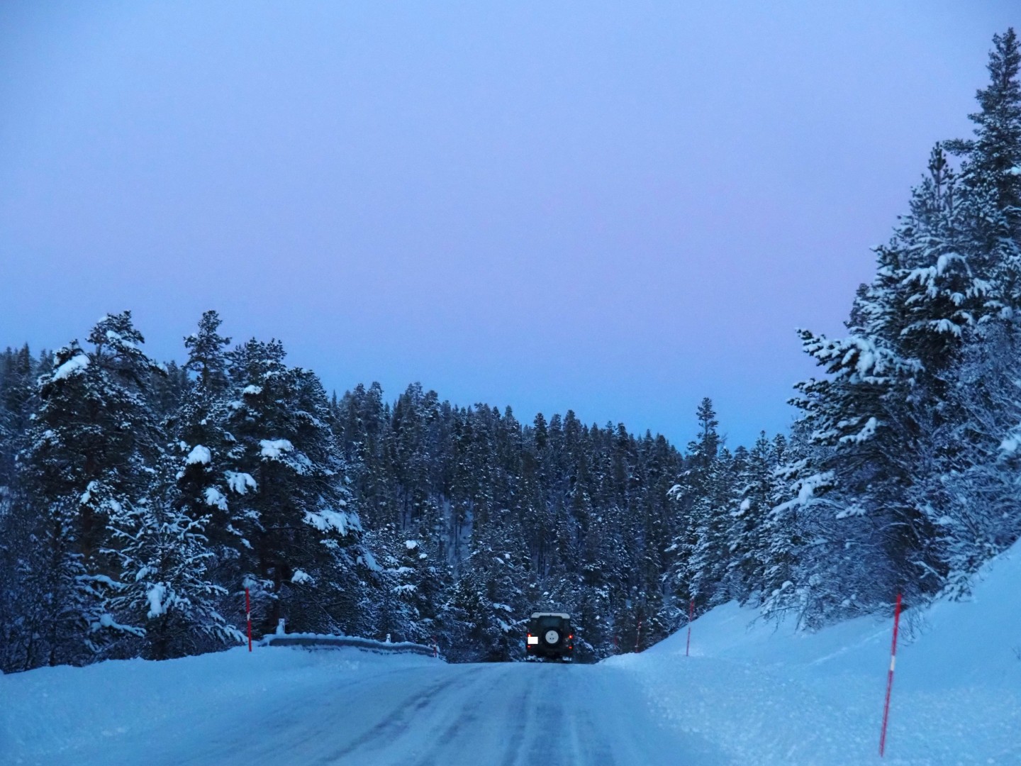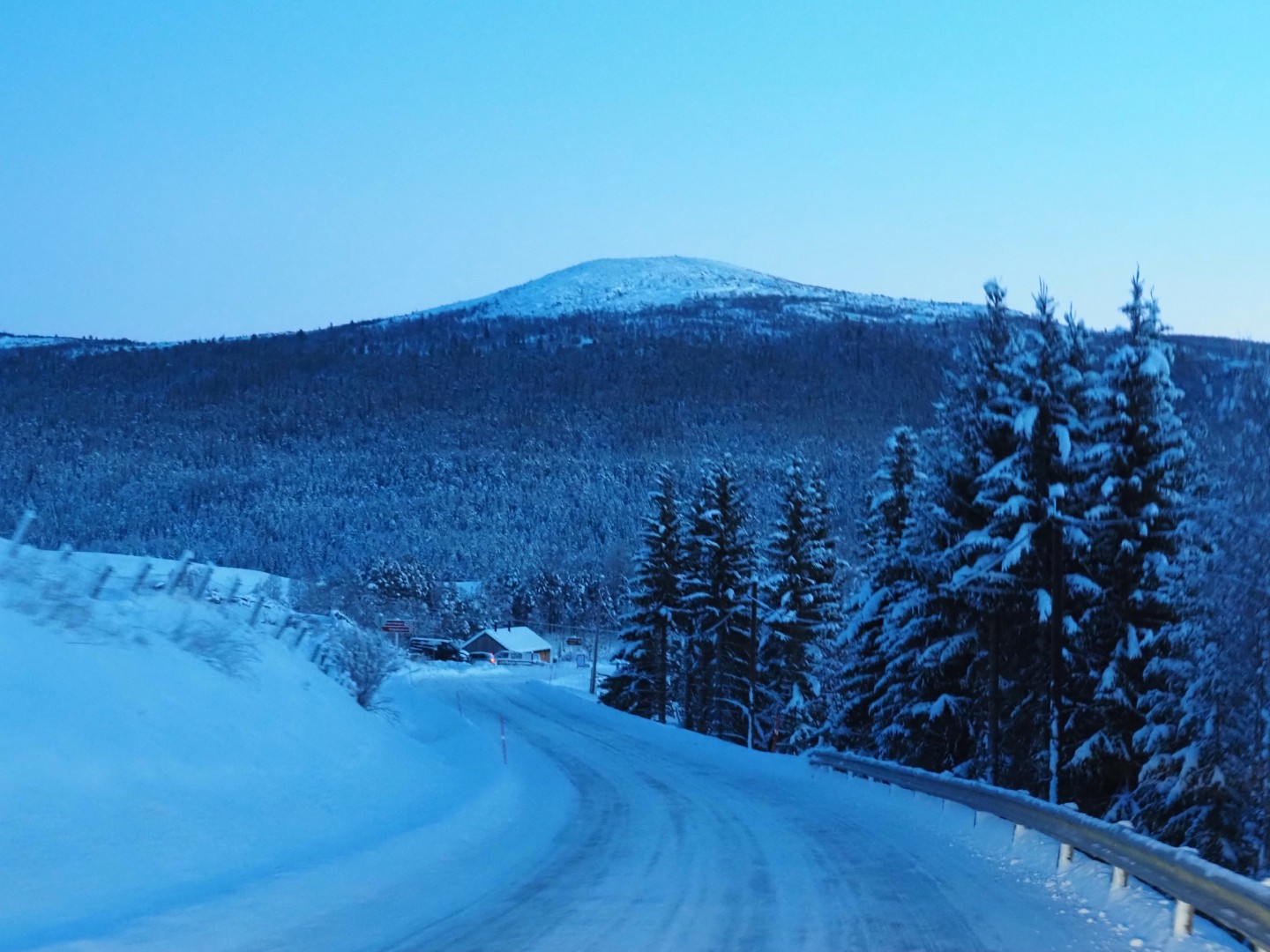 In het blauwe uurtje rijden we eerst naar JOKER in At5nbrua en via Enden naar Ringebu, want het kerstlicht in de boom buiten heeft de geest gegeven!