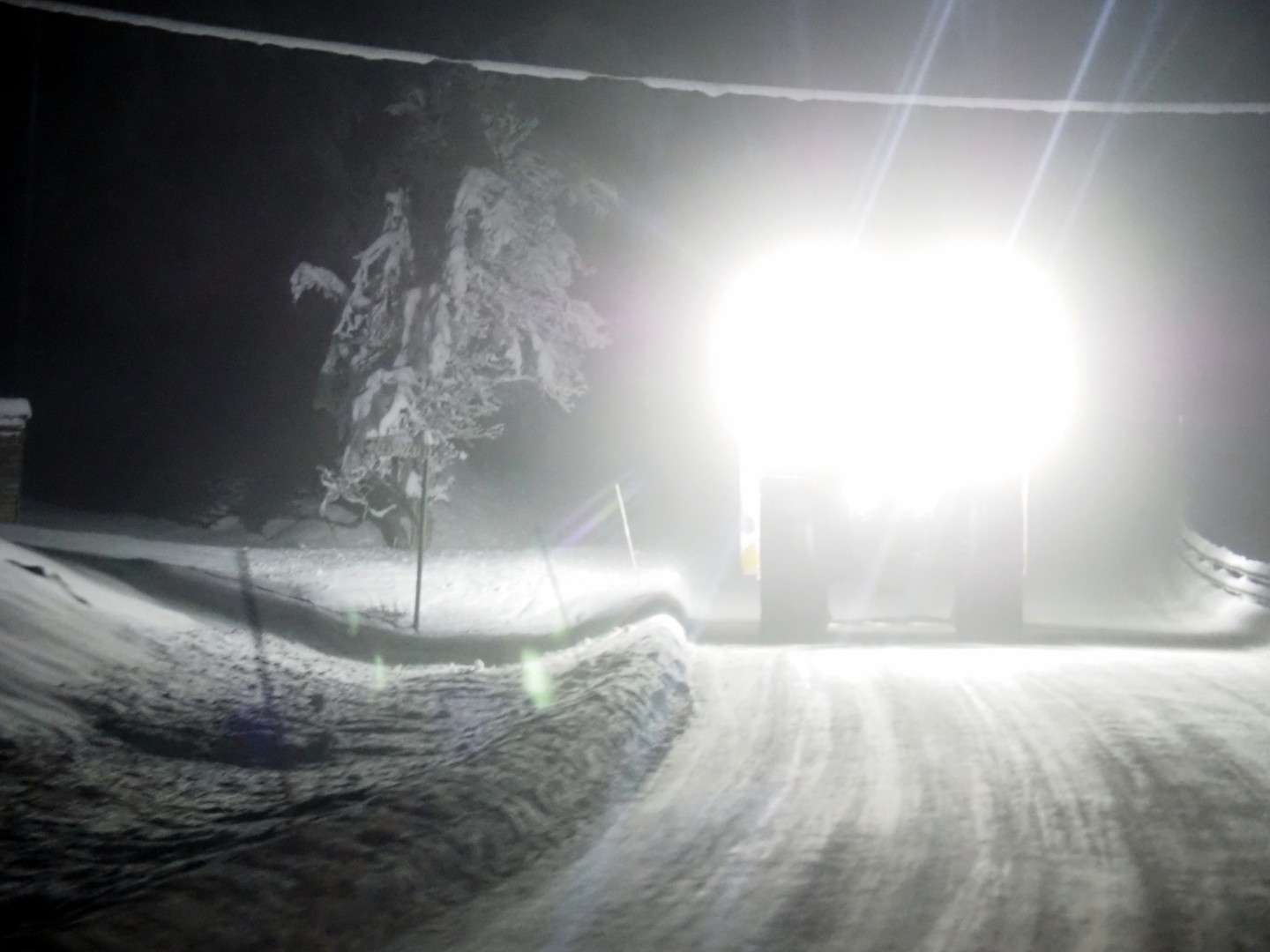 En brøytebil på vei tilbake fra Ringebu til Enden. Helt mørkt kl. 16.15. Een sneeuwruimer op de terugweg van Ringebu naar Enden. Pikdonker 16.15 uur