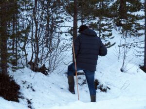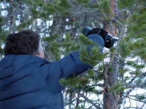 Ekornmateren henger i skogen og nedenfor ser du hvorfor vi har piggdekk!