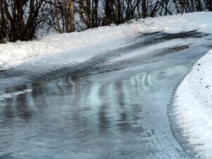 Vi kjører til JOKER i Atnbrua over en vei strødd med sand. We rijden naar de JOKER in Atnbrua. Er wordt nu geen zout meer gestrooid, want het vriest! Dan strooien ze zand!!