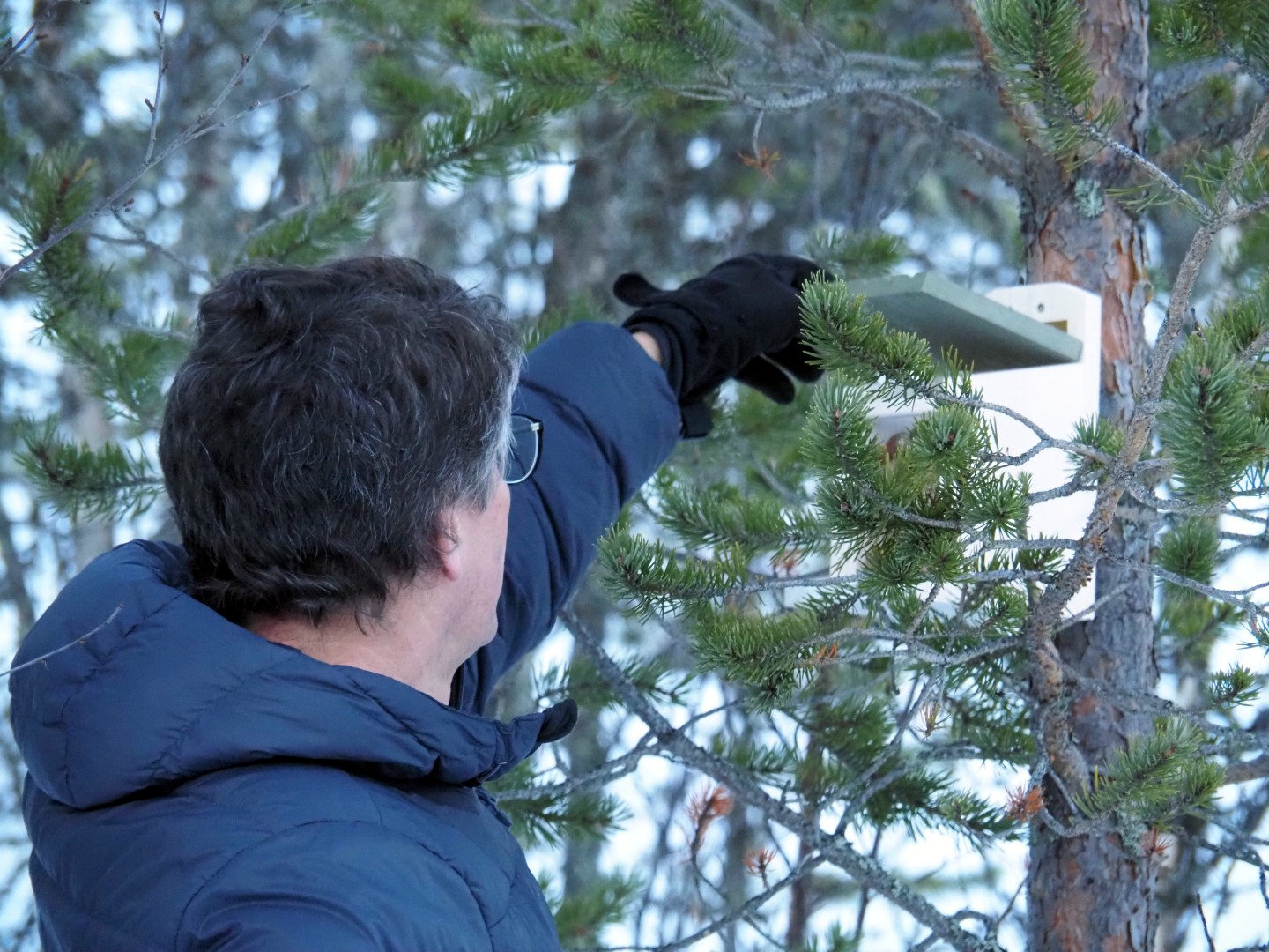 Ekornmateren henger i skogen og nedenfor ser du hvorfor vi har piggdekk!