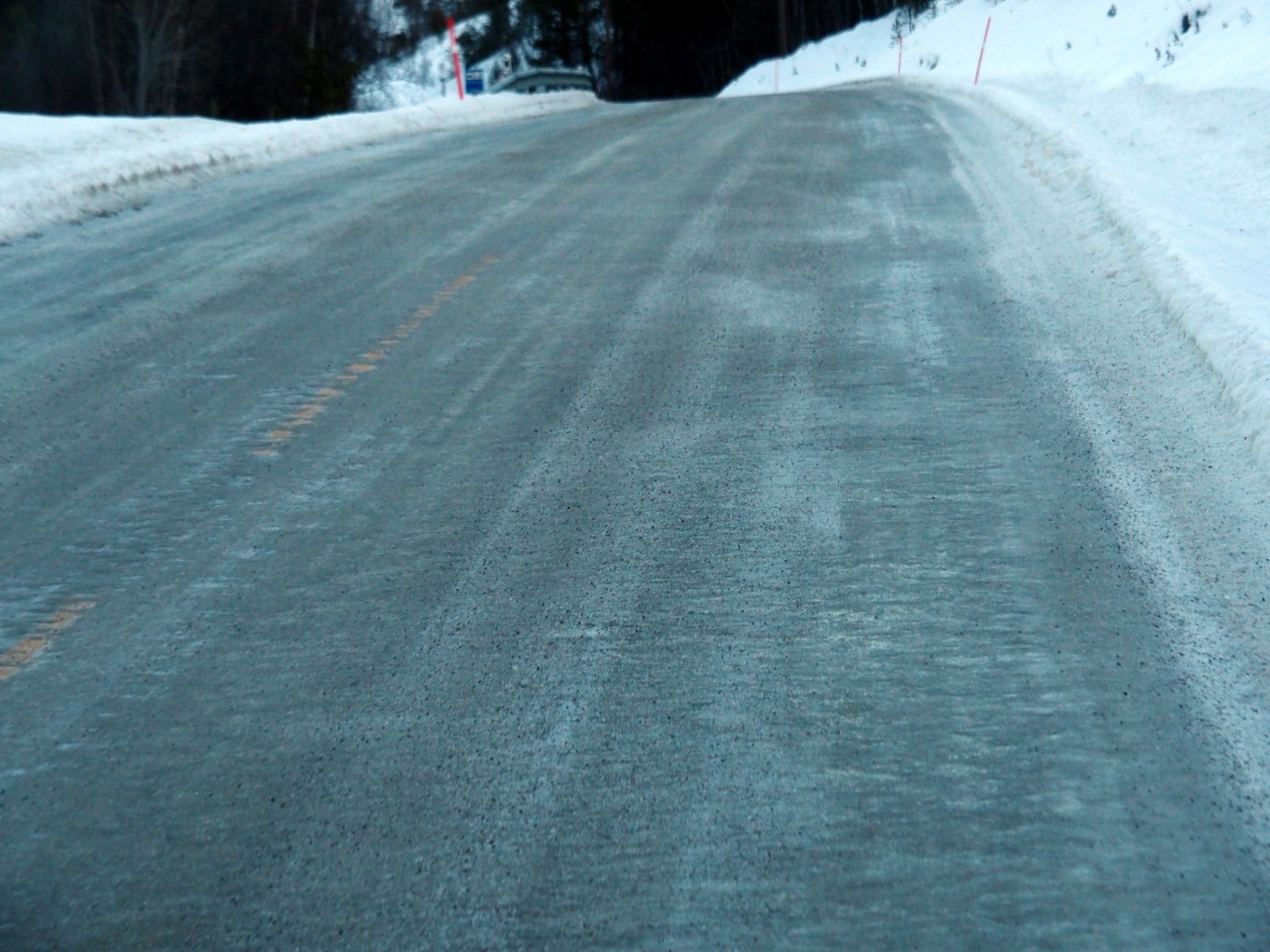 Vi kjører til JOKER i Atnbrua over en vei strødd med sand. We rijden naar de JOKER in Atnbrua. Er wordt nu geen zout meer gestrooid, want het vriest! Dan strooien ze zand!!