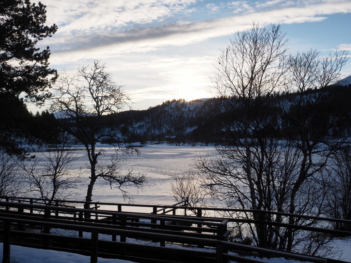 Rundtjørna var frosset, men nå bare delvis! Stakkars isfiskerne, de må vente på kaldere temperaturer. Rundtjørna is deels ontdooit na een paar dagen +graden. De arme ijsvissers, die zitten nu thuis te kniezen!