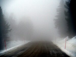 Tåkete på vei til Folldal. Op weg naar Folldal is het dichtgeplakt met mist