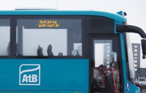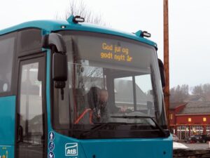 Bussen i Røros med juleønsker. De bus in Røros met kerstwensen