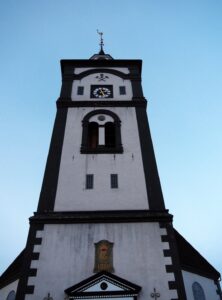 Det er tåkete og pluss og min grader, så snøen forvandler seg til is. I Røros ser du kirken overalt hvor du går.