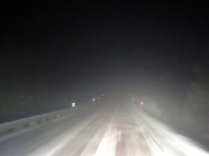 2,5 timer kjøring til ”Lunden” i tåket. 2,5 uur rijden terug naar ”Lunden” in de mist