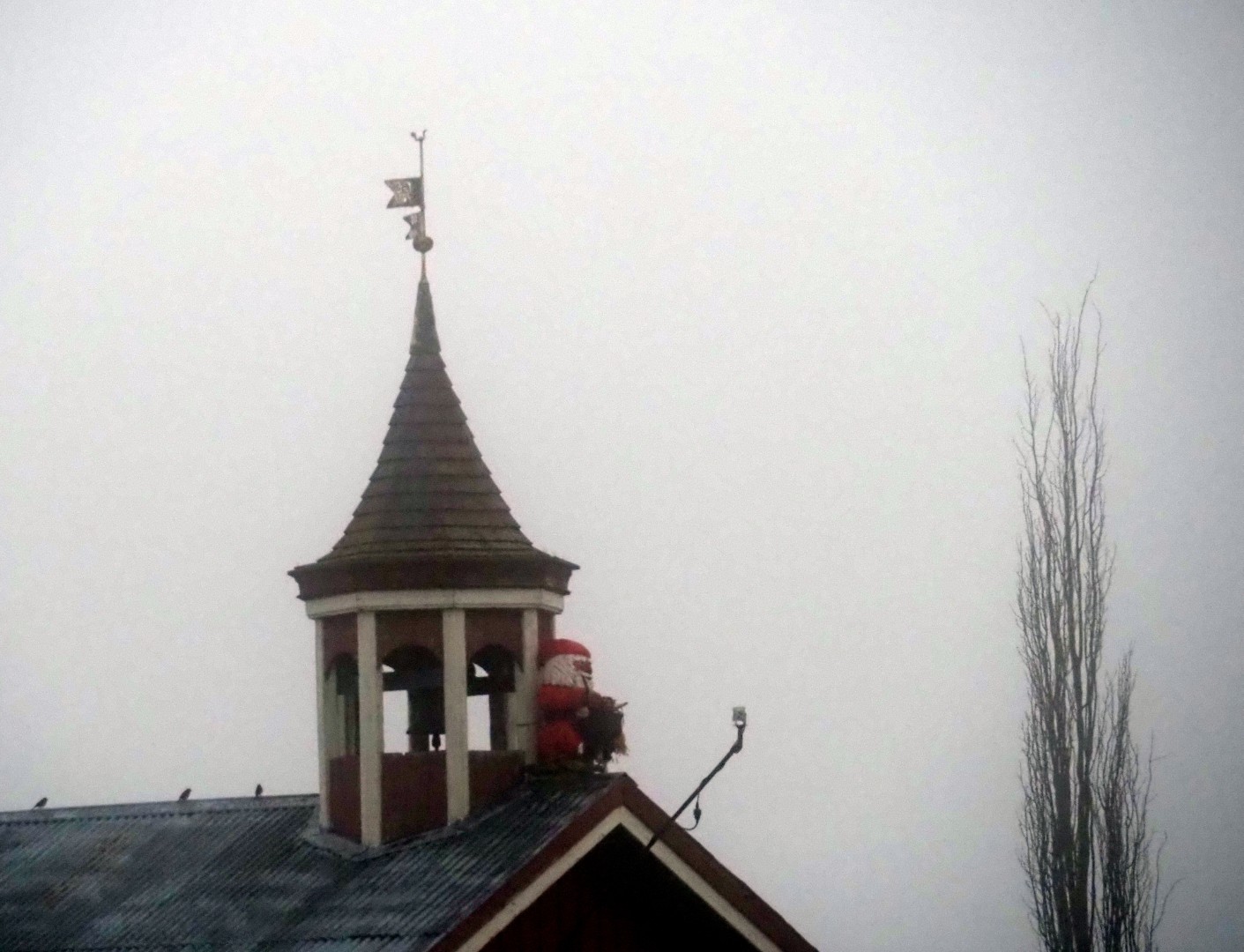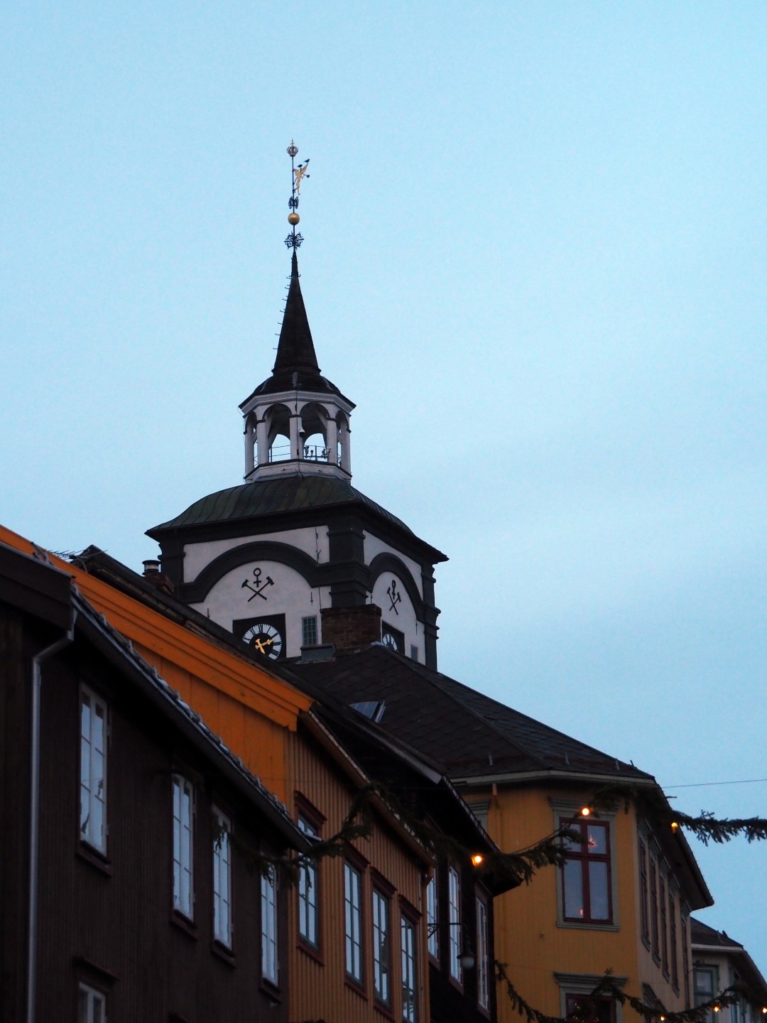 Det er tåkete og pluss og min grader, så snøen forvandler seg til is. I Røros ser du kirken overalt hvor du går.