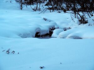En åpning bak en snørygg. Een opening achter zo’n sneeuwrug