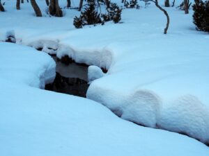 Oi! Vann i skogen. Dit is oppassen geblazen. De bergbeken stromen nog hard!