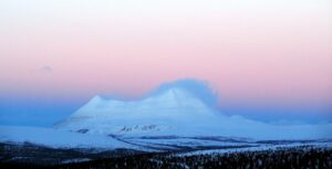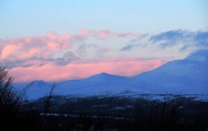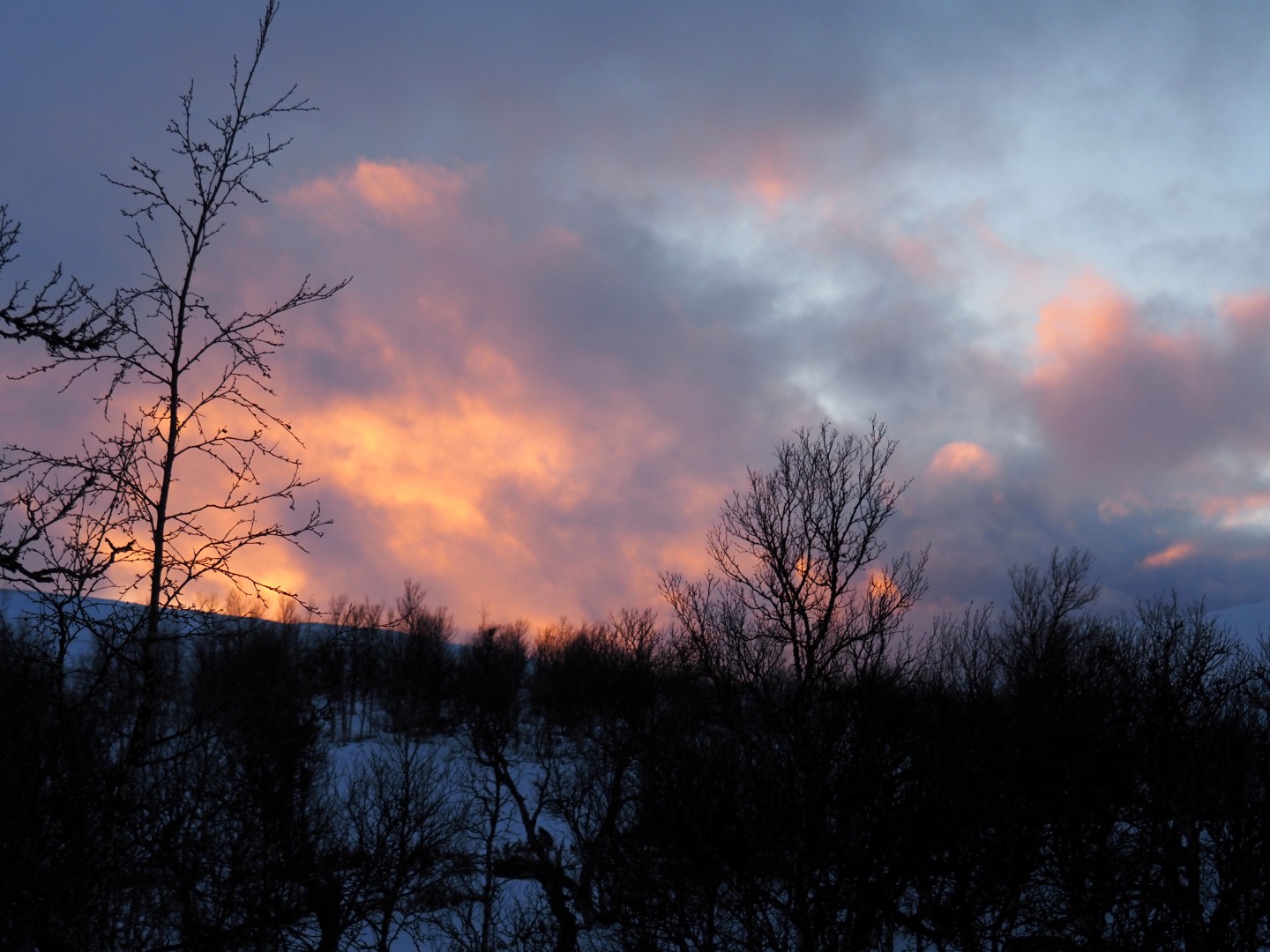Solnedgangen over Venabygdsfjellet. Zonsondergang over Venabygdsfjellet