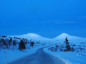 Vi kjører over Venabygdsfjellet i solen til Ringebu og via Venabygd tilbake til Enden i blåtimen.